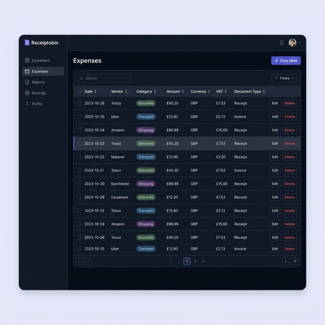 Every receipt is stored, categorised, and linked to an image — always ready for HMRC or your accountant.